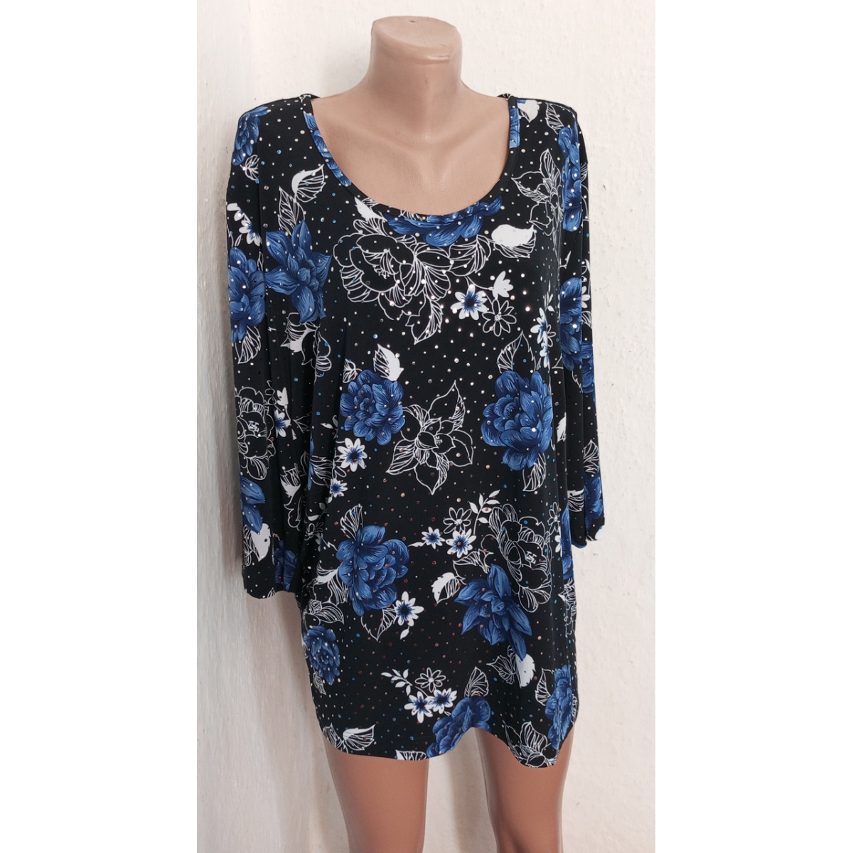 Блуза жіноча чорна з квітами. Секонд хенд. Розмір 48-50.